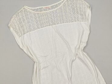 Bluzka damska Camaïeu - Kolor: ecru/kremowy, lekko melanżowy - Fason: luźny, z opadającym rękawkiem (kimono/cap sleeve), okrągły dekolt - Materiał: cienka, półprzezroczysta dzianina z delikatną fa...