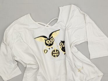 Bluzka damska E.M.G Collection, rozmiar 42 (metka: EU 42 / UK 12). - Kolor: biały z nadrukiem ptaków w odcieniach różu, niebieskiego i czerni - Fason: luźny, z elastyczną gumką na dole (ściągacz) ...