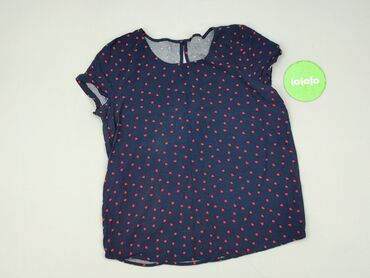 Krótki rękawGranatowa bluzka damska w drobne czerwone serduszka