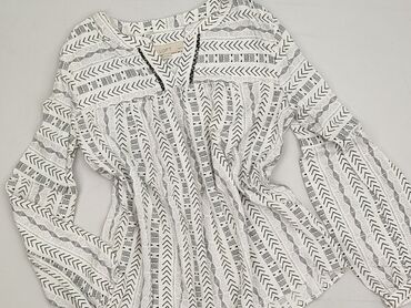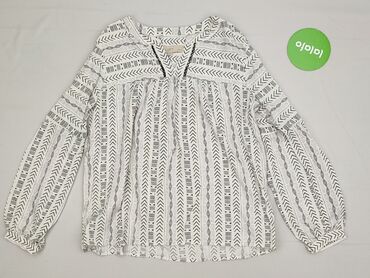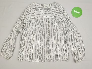Bluzka damska z długim rękawem, rozmiar M (EUR/US/CA/CN/MX – na metce). - Kolor: biel w drobny czarny, roślinny/geometryczny wzór. - Fason: swobodny, z dekoltem w kształcie litery V zapinanym na ...