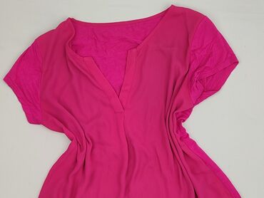 Bluzka damska w intensywnym kolorze fuksji - Fason: luźny, prosty krój - Dekolt: w kształcie litery V - Rękawy: krótkie, z falbanką na zakończeniu - Materiał: 100% poliester (metka na zdjęciu) - R...