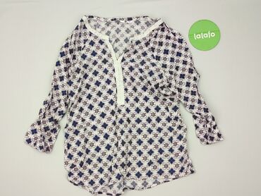 Bluzka damska Pepco, rozmiar XS - Fason: luźna bluzka z zaokrąglonym dołem - Rękaw: 3/4 - Dekolt: okrągły - Zapięcie: mały guziczek z pętelką z tyłu przy szyi - Wzór: kwiatowy nadruk na białym tle...