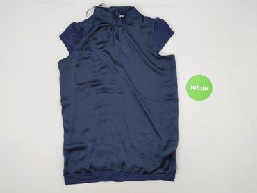 Bluzka Orsay – rozmiar M - Kolor: granatowy z wielobarwnym, kwiatowym nadrukiem - Fason: lekko luźna, z marszczeniem przy dekolcie; długie rękawy zakończone efektowną, rozszerzaną falbanką - Dekol...