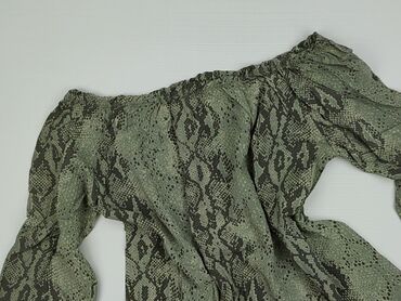 Bluzka damska z wzorem wężowej skóry - Krój: luźny, z odkrytymi ramionami (cold shoulder) - Dekolt: stójka z wiązaniem z przodu - Rękawy: długie, zakończone delikatnym ściągnięciem/falbaną przy ma...Stan: