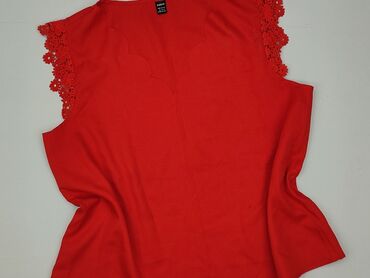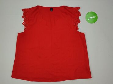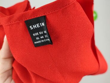 Bluzka damska SHEIN Curve - Rozmiar: 1XL (linia Curve) - Krój: kopertowy dekolt V, długie rękawy z falbaną przy mankietach - Wzór: drobna biała łączka na ceglasto‑czerwonym tle - Materiał: 95% pol...