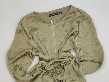 Bluzka damska Bershka - Kolor: butelkowa zieleń - Rozmiar z metki: S (EU S / USA S / MEX 26) - Fason: lekko dopasowany, z dekoltem w serek i kołnierzykiem - Rękawy: długie, zakończone mankietami n...