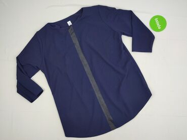 Damska bluzka z długim rękawem, granatowa - Krój: luźny, z subtelnymi zakładkami przy dekolcie - Dekolt: półokrągły - Rękawy: długie, zakończone gumką (delikatne bufki) - Dół: lekko zaokrąglony, z...
