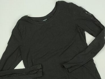 Czarna bluzka damska z długim rękawem i głębokim dekoltem V z koronkową wstawką. - Rozmiar: M (metka) - Skład materiału: 95% poliester, 5% elastan - Faktura tkaniny: delikatny, prążkowany/tekstury...