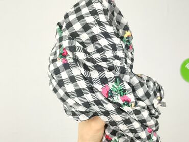 - Wzór: czarno‑biała kratka gingham z drobnym, kolorowym, kwiatowym nadrukiem
