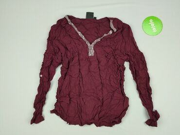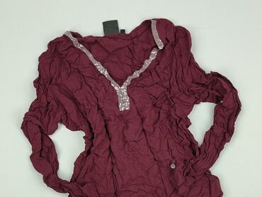 Bluzka damska ANASTACIA - Kolor: głęboki bordo/burgund - Krój: swobodny, z dłuższym tyłem - Dekolt: w kształcie litery V, wykończony ozdobną lamówką w drobny wzór - Rękawy: długie, z możliwością p...Stan: