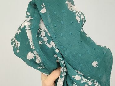 Damska bluzka w kwiaty - Krój: luźny, lekko wydłużony tył, dekolt w kształcie V - Rękaw: krótki, opadający (kimono/cap sleeves) - Wzór: drobne białe kwiaty na pastelowo-zielonym tle - Materiał: ci...