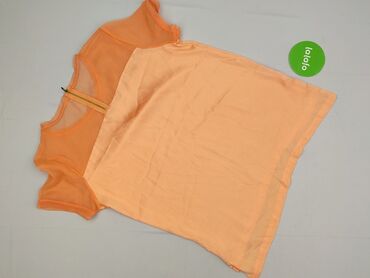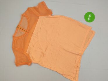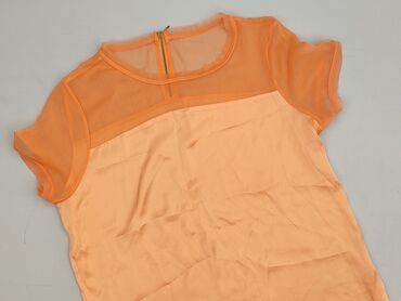 Bluzka damska w kolorze brzoskwiniowym - Krój: luźny, prosty - Rękaw: krótki - Dekolt: łagodnie zaokrąglony - Zapięcie: kryty suwak i pęknięcie z tyłu - Rozmiar z metki: M - Materiał: cienka, lekk...