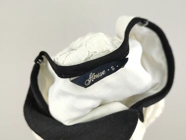 Czarna bluzka damska HOUSE Lady, rozmiar S. - Fason: koszulowy top bez zapięcia z kołnierzykiem - Rękawy: krótkie, z koronkową wstawką o kwiatowym wzorze - Materiał: 100% poliester (metka wewnętrz...