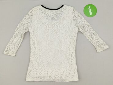 Koronkowa bluzka damska z długim rękawem i kontrastowym kołnierzykiem - Krój: dopasowany, długość do bioder - Materiał: delikatna, ażurowa koronka o roślinnym wzorze; miękka podszewka w kolorze zb...Bluzka damska House, rozmiar S
