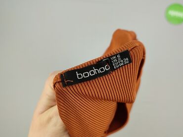 Bluzka damska Boohoo, rozmiar EU 38 (UK 10, US 6). - Krój: kopertowy dekolt, taliowanie gumką, delikatnie rozkloszowany dół typu peplum - Rękawy: do łokcia z lekką falbaną - Wzór i kolor: ciemny br...