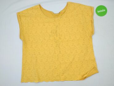 Bluzka damska z krótkim rękawem, pastelowo‑żółta - Fason: luźny, pudełkowy krój; opuszczona linia ramion; kołnierzyk z klapami - Zapięcie: na guziki z przodu - Rękawy: krótkie, szerokie, wywijane ...