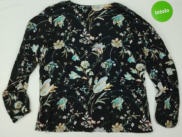 Bluzka damska KappAhl, rozmiar M - Fason: lekko taliowana, z długimi rękawami zakończonymi delikatną gumką; dekolt w kształcie litery V z krótką stójką - Wzór: gęsty, botaniczny nadruk na jasnym t...