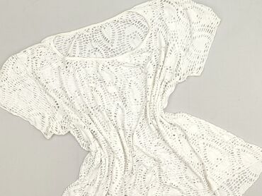 Ażurowa bluzka damska w kolorze białym. - Luźny, oversize’owy krój z obniżoną linią ramion i krótszym przodem – swobodnie opada, świetnie wygląda na topie lub kostiumie. - Miękka, przewiewna dzian...