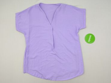 Bluzka damska w kolorze liliowym (jasny fiolet) - Luźny, zwiewny krój, szeroki dekolt z delikatnym marszczeniem - Krótkie, bardzo lekkie rękawki - Cienka, półtransparentna tkanina – komfortowa na ...Stan:
