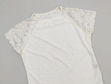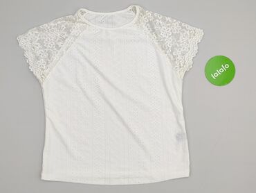 Biała bluzka damska SHEIN - Rozmiar: L (EU 40/42, US 8/10 – na metce) - Krój: prosta, lekko opływowa - Dekolt: w kształcie V z falowanym, wyciętym brzegiem (scallop) - Rękawy: krótkie, koronkowe, ...