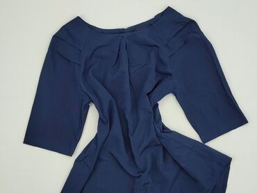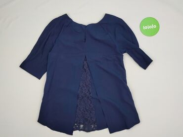 Damska bluzka z długim rękawem, granatowa. - Fason: lekko taliowana, zaokrąglony dół - Dekolt: w kształcie litery V z krótką listwą guzikową (3 guziki z przodu + 1 przy dekolcie) - Rękawy: długie,...