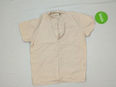 Bluzka damska w kolorze jasnego beżu/ecru. - Fason: luźny, koszulowy, z zaokrąglonym dołem (dłuższy tył). - Dekolt: okrągły z miękką, dekoracyjną klapą/kołnierzykiem. - Zapięcie: ukryta listwa z g...