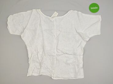 Biała bluzka damska NEW COLLECTION, Made in Italy - Krój: luźny, z krótkim rękawem typu kimono - Dekolt: okrągły - Dół: ściągacz/tunel ze sznurkiem do regulacji obwodu - Materiał: 50% len, 50% baw...