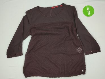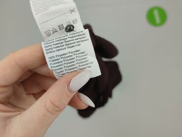 - Materiał: 100% poliester (informacja z metki); gładkie rękawy i karczek, przód i dół z fakturowaną, miękką tkaniną o subtelnym wzorze