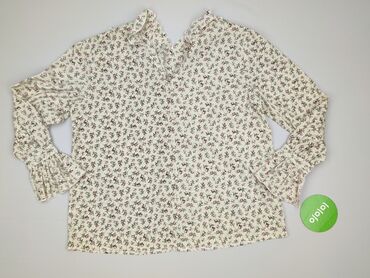 - Fason: romantyczny, z falbaną przy dekolcie i wiązaniem pod szyją; długie rękawy zakończone szeroką falbaną