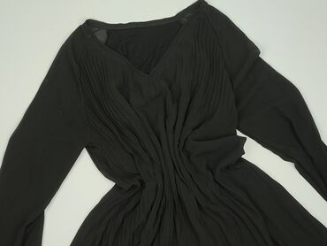 Bluzka damska, czarna, z długim rękawem - Fason: swobodny, delikatnie rozkloszowany dół - Materiał: lekka, półprzezroczysta tkanina szyfonowa; przód z drobnymi, pionowymi plisami - Rękawy: długie, ...