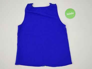 Bluzka damska bez rękawów w kolorze jasnoniebieskim. - Krój: swobodny, z elastycznym dołem tworzącym delikatne marszczenie - Dekolt: szeroki, okrągły z podwójną falbaną wokół ramion; ozdobne, koro...