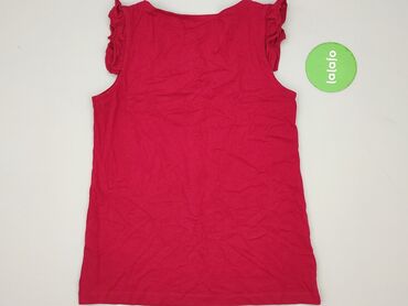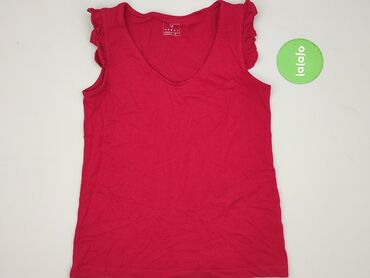 Czerwona bluzka damska bez rękawów - Fason: prosty, lekko luźny - Dekolt: okrągły - Rękawy: krótkie skrzydełka/volanty z falbanką po bokach przodu i z tyłu - Tkanina: lekka, miękka, lekko elastycz...
