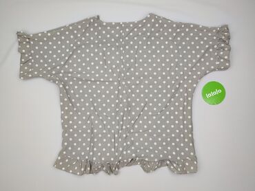 - Fason: luźny, nietoperzowe rękawy do łokcia, zakończone delikatną falbanką; falbanka również u dołu. Okrągły dekolt.