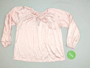 Bladoróżowa bluzka damska z miękkiej, gładkiej tkaniny. - Krój luźny, swobodnie opadający. - Dekolt w kształcie litery V z szeroką listwą. - Rękawy 3/4 z obszerną bufką i szerokim mankietem. - ...Stan:
