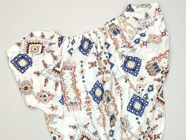 Bluzka damska F&F - Kolor: biały - Krój: luźny, z elastyczną talią/karczkiem z przodu; dekolt w kształcie kwadratu, wiązanie na troczek z przodu - Rękawy: krótkie, bardzo bufiaste z gumką przy man...