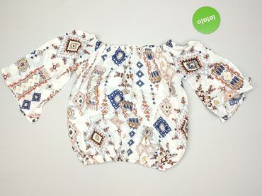 Bluzka damska z ażurowej bawełny, rozmiar S (EUR/US S). - Kolor: biały, haft angielski z drobnymi wycięciami i subtelnym, wytłaczanym wzorem. - Krój: prosty, lekko luźny. - Rękawy: 3/4, bufiaste...