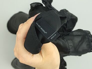 Bluzka damska VERO MODA, rozmiar M. - Kolor: czarny - Materiał: lekka, półprzezroczysta tkanina szyfonowa - Krój: luźny, przewiewny; dół delikatnie ściągany - Rękaw: krótki/kimonowy - Dekolt: w ks...