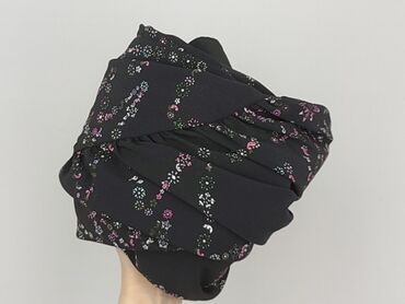 - Wzór: czarny materiał z drobnym kwiatowym nadrukiem układającym się w gwiazdowe motywy (róż, biel, zieleń)
