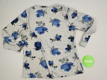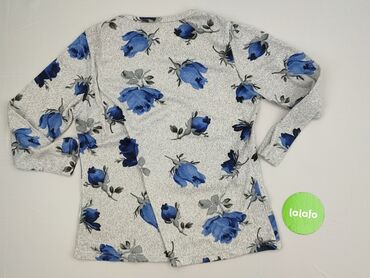 Bluzka damska z długim rękawem w kwiatowy wzór. - Kolorystyka: tło w odcieniu grafitowym/szaro-granatowym, kwiaty w barwach czerwieni, granatu, bieli i błękitu. - Fason: luźniejszy, z okrągłym dek...