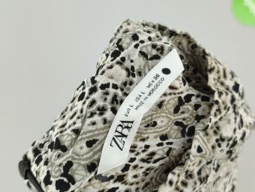 Bluzka damska ZARA BASIC - Rozmiar z metki: EU XL / USA XL / MEX 32 - Skład: 91% poliester, 9% elastan - Made in Spain - Krój: luźniejszy, z krótkim rękawem - Przód: biały z abstrakcyjnym nadrukie...