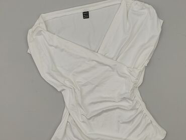 Biała bluzka SHEIN dla kobiet - Rozmiar: EU L (40/42), US 8/10 - Fason: kopertowy dekolt w serek, odcięcie w talii z delikatnym marszczeniem, dół lekko rozkloszowany peplum - Rękawy: długie, z lek...