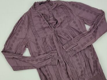 Bluzka damska Mohito - Model: elegancka bluzka z koronkową wstawką na dekolcie i ramionach - Kolor: śliwkowy/fioletowy - Rozmiar z metki: 40 - Fason: prosty, lekko luźny; długi rękaw zakończony ma...