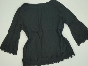 Bluzka damska H&M - Kolor: czarny - Rozmiar z metki: EU 38 (US/CA 8, CN 165/88A, MX 8) - Fason: luźny, lekko wydłużony tył - Dekolt: w kształcie litery V z listwą - Rękawy: 3/4, mankiety zapinane ...
