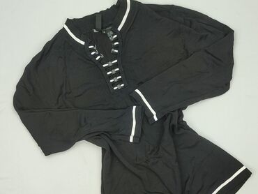 Bluzka damska z długim rękawem, czarna, prążkowana. - Dekolt w kształcie litery V z ozdobną koronką z przodu i z tyłu - Elastyczna, dopasowująca się dzianina o prążkowanej strukturze - Skład (metk...