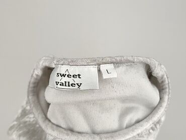 Bluzka damska z długim rękawem w kolorze jasnoszarym. Charakteryzuje się okrągłym dekoltem ozdobionym błyszczącymi cekinami oraz szerokim pasem białej koronki biegnącej wzdłuż dolnego obszycia. Blu...
