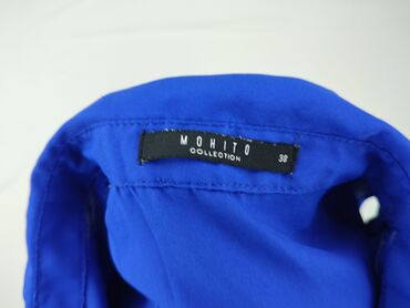 Bluzka damska MOHITO, rozmiar M. - Kolor: biały - Krój: luźniejszy, z obniżoną linią ramion i krótkim rękawkiem typu cap - Dekolt: łódka - Ozdoby: drobne, srebrne dżety rozmieszczone na całym przo...