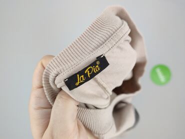 Bluzka damska La Pia, prążkowana, beżowa - Krój: dopasowany T‑shirt z krótkim rękawem - Dekolt: okrągły z niewielkim rozcięciem w kształcie litery V, ozdobiony złotym łańcuszkiem i dwoma kamieniam...Stan:
