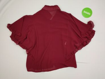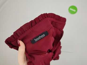 Bluzka damska Boohoo - Kolor: bordowy - Fason: krótki top z długim, bufkowanym rękawem - Dekolt: okrągły z falbanką - Ozdoby: wyraźne falbany na ramionach - Zapięcie: z tyłu na guzik - Materiał: 9...Stan:
