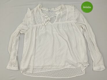 Bluzka damska Cropp - Kolor: biały - Rozmiar z metki: S - Skład: 100% wiskoza - Fason: lekko luźny, z dłuższym tyłem - Dekolt w kształcie litery V z wiązaniem i falbanką - Długie rękawy zakończone...