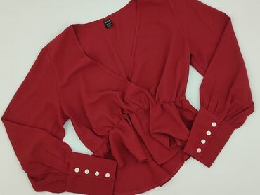 Bluzka damska SHEIN - Kolor: intensywna czerwień/bordo - Krój: prosty, swobodny - Dekolt: w kształcie litery V - Rękaw: długi - Materiał: cienka, miękka dzianina (przyjemna w dotyku, lekko elastyc...